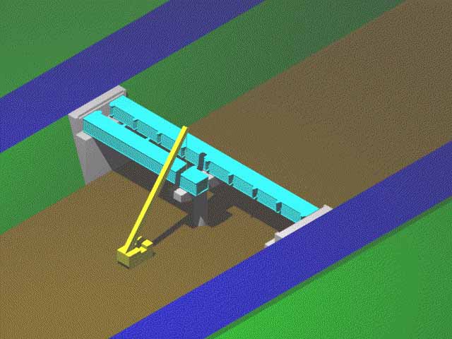本当の架設作業は、ステージ(ベント)を組んだり足場を作ったりと、もう少し複雑です。